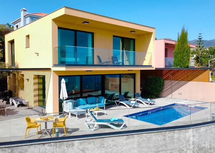 La Eden Sun - A Modern Luxury Villa with a Panoramic View ofrece un patio con vistas a la piscina y se encuentra a 60 minutos en coche del aeropuerto Internacional de Madeira. Esta villa, que ofrece a sus huéspedes Wi-Fi y un aparcamiento, está a una distancia de 3 km de Praia da Calheta.